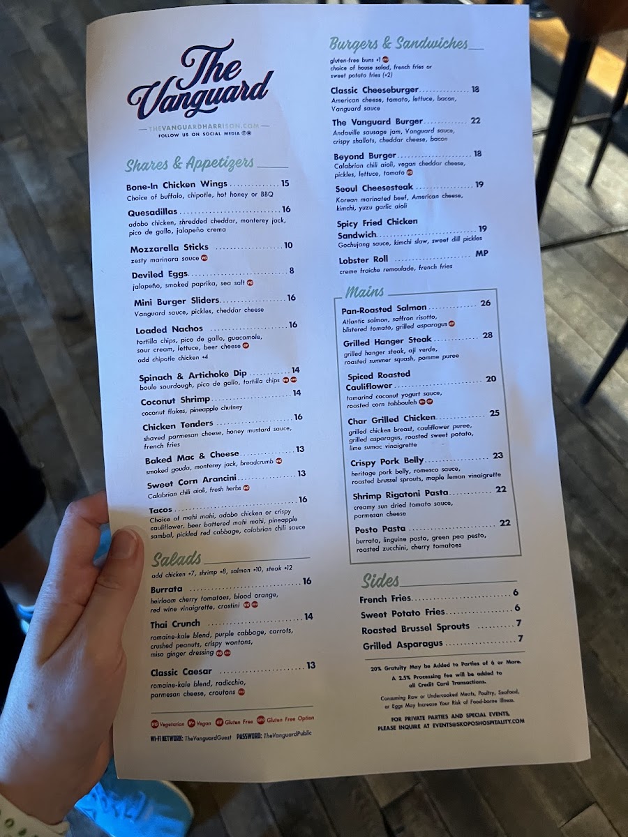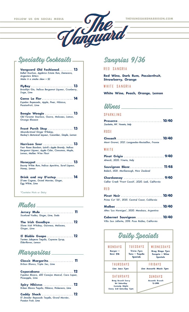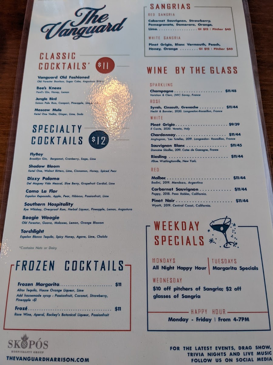 “ We went to Drag Bingo night on Thursday and it was a blast! Harmonica was funny and friendly. The food at the Vanguard was good—we tried the Pupu platter and the Vanguardian burger. We also had some drinks, which were great and priced fairly. Harrison doesn’t have a lot of restaurant options so it’s nice to see a good one nearby—we’ll be back! ”